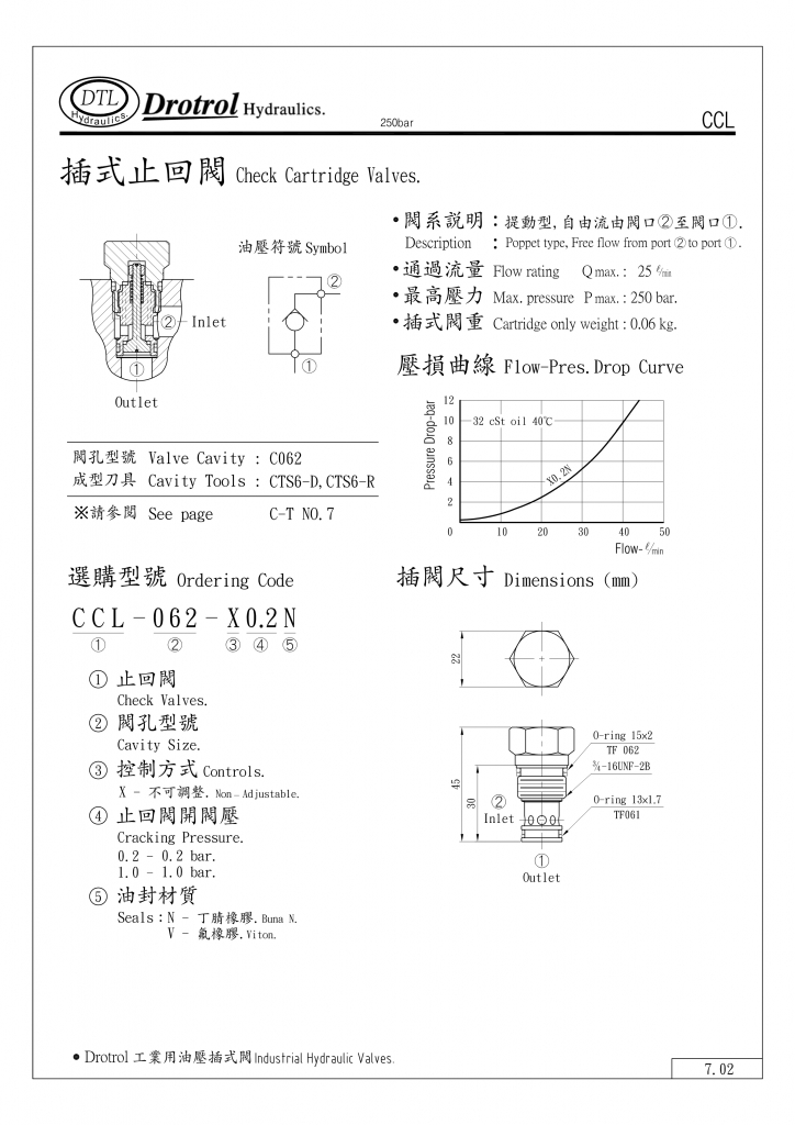 DTL插式止回閥常規(guī)型號參考:CCL-082-X0.2N , CCL-082-X0.2V , CCL-082-X1.0N , CCL-082-X1.0V ,