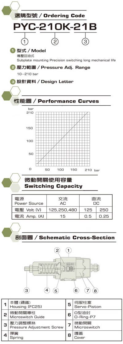 PYC系列回油式壓力開關(guān):PYC-210K-21B