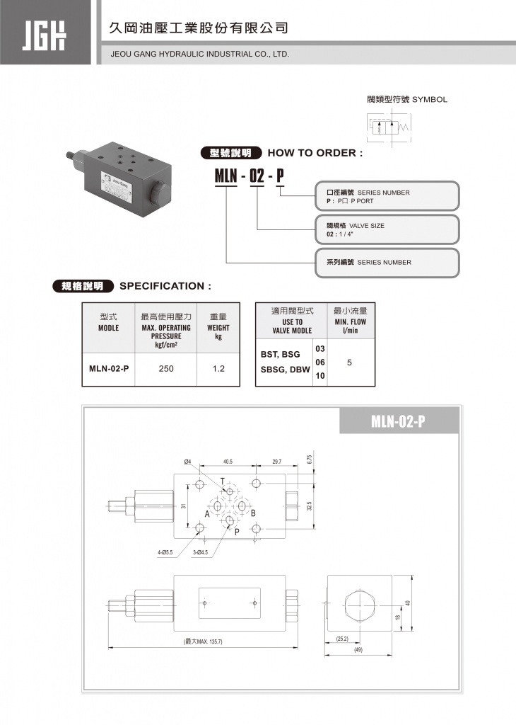 JGH久岡疊加式控制閥部分常規(guī)型號(hào)參考:MLN-02-P