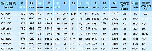 CLC油壓冷卻器部分常規(guī)型號(hào)參考:OR-60 , OR-100 , OR-150 , OR-250 , OR-350 , OR-600 , OR-800 , OR-1000