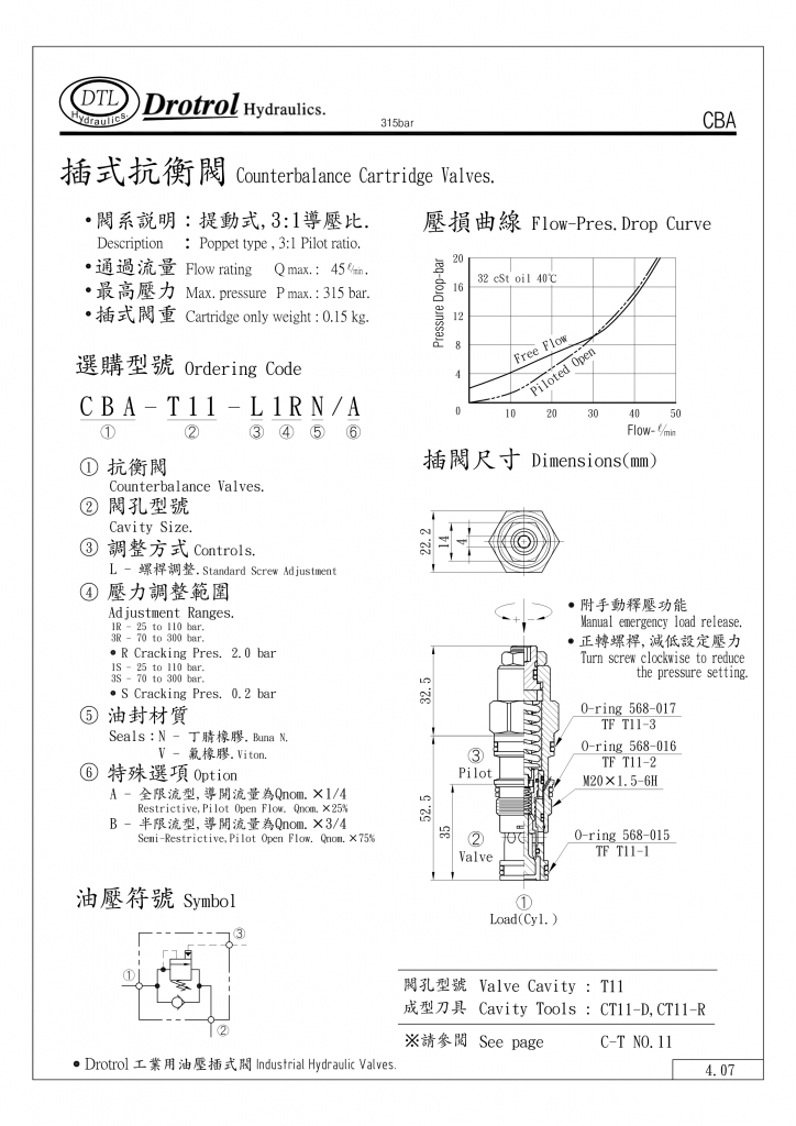 DTL插式抗衡閥部分常規(guī)型號參考:CBA-T11-L1RN/A , CBA-T11-L1RN/B , CBA-T11-L1RV/A , CBA-T11-L1RV/B , CBA-T11-L1SN/A , CBA-T11-L1SN/B , CBA-T11-L1SV/A , CBA-T11-L1SV/B , CBA-T11-L3RN/A , CBA-T11-L3RN/B , CBA-T11-L3RV/A , CBA-T11-L3RV/B , CBA-T11-L3SN/A , CBA-T11-L3SN/B , CBA-T11-L3SV/A , CBA-T11-L3SV/B ,