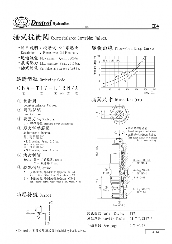 DTL插式抗衡閥部分常規(guī)型號參考:CBA-T17-L1RN/A , CBA-T17-L1RN/B , CBA-T17-L1RV/A , CBA-T17-L1RV/B , CBA-T17-L1SN/A , CBA-T17-L1SN/B , CBA-T17-L1SV/A , CBA-T17-L1SV/B , CBA-T17-L3RN/A , CBA-T17-L3RN/B , CBA-T17-L3RV/A , CBA-T17-L3RV/B , CBA-T17-L3SN/A , CBA-T17-L3SN/B , CBA-T17-L3SV/A , CBA-T17-L3SV/B ,