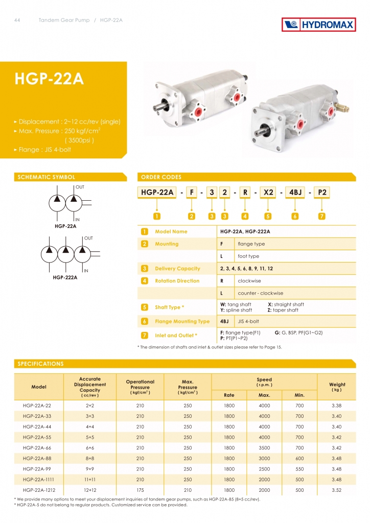 | HGP-22A-F44R | 4+4 | 210 | 1800 | 4000 | 700 | 3.40 | |