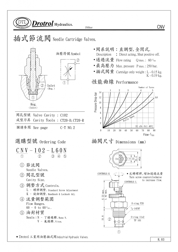 DTL插式節(jié)流閥部分常規(guī)型號參考:CNV-082-K30N , CNV-082-K30V , CNV-082-L30N , CNV-082-L30V ,