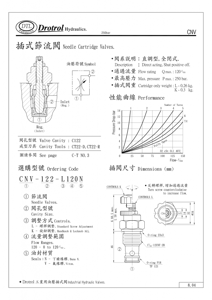 DTL插式節(jié)流閥部分常規(guī)型號參考:CNV-122-K120N , CNV-122-K120V , CNV-122-L120N , CNV-122-L120V ,