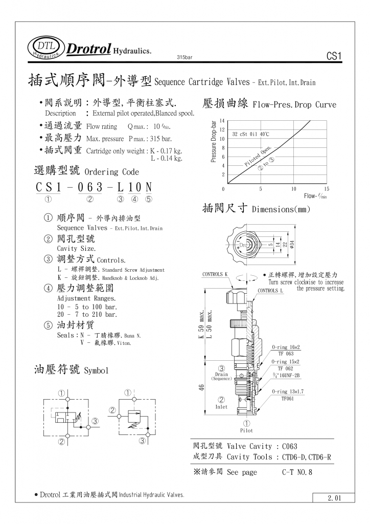 DTL插式順序閥部分常規(guī)型號(hào)參考:CS1-063-L10V , CS1-063-K10V , CS1-063-L20V , CS1-063-K20V , CS1-063-L10N , CS1-063-K10N , CS1-063-L20N , CS1-063-K20N ,