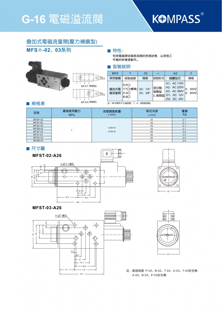 KOMPASS康百世疊加閥 MFSP,MFST,MFSA,MFSB-02,03系列電磁溢流閥 壓力補償型