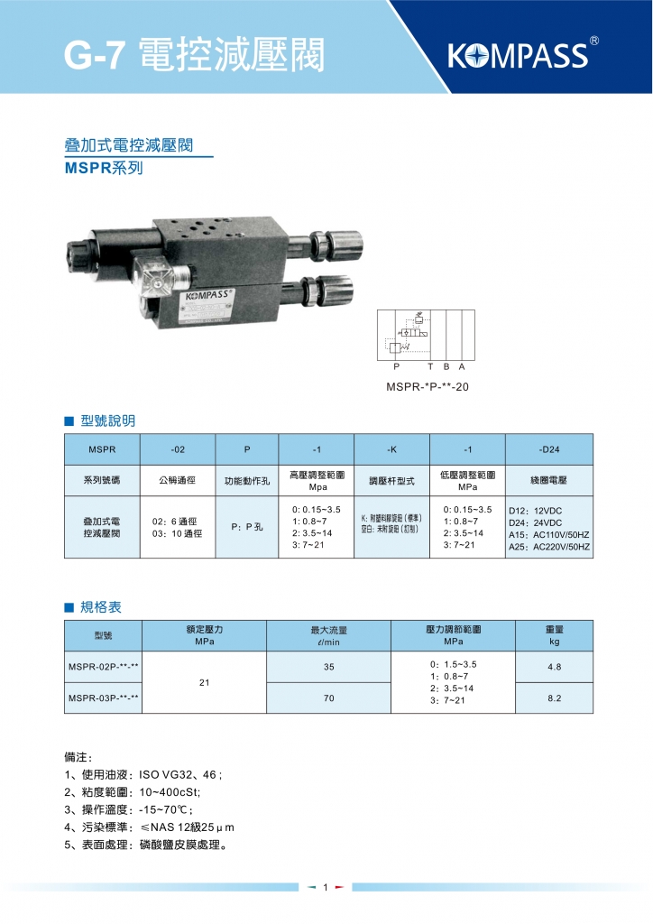 KOMPASS康百世疊加閥 MSPR-02,03系列疊加式電控減壓閥