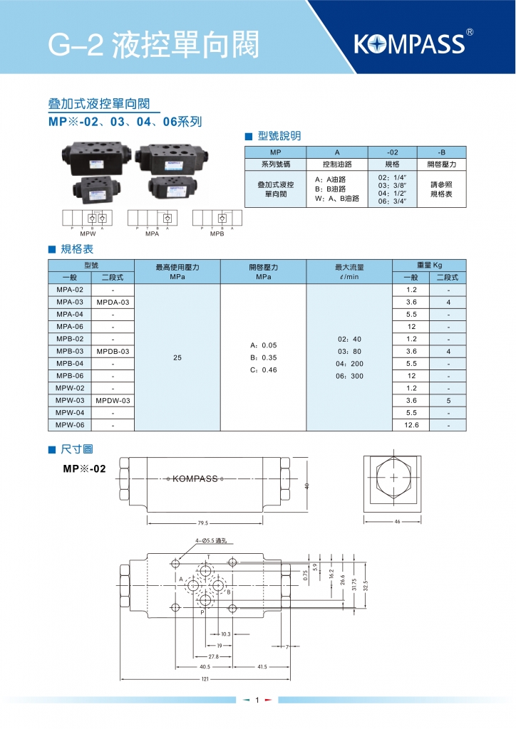 KOMPASS康百世疊加閥 MCP,MCA,MCB,MCT,MCW系列疊加式單向閥-KOMPASS康百世