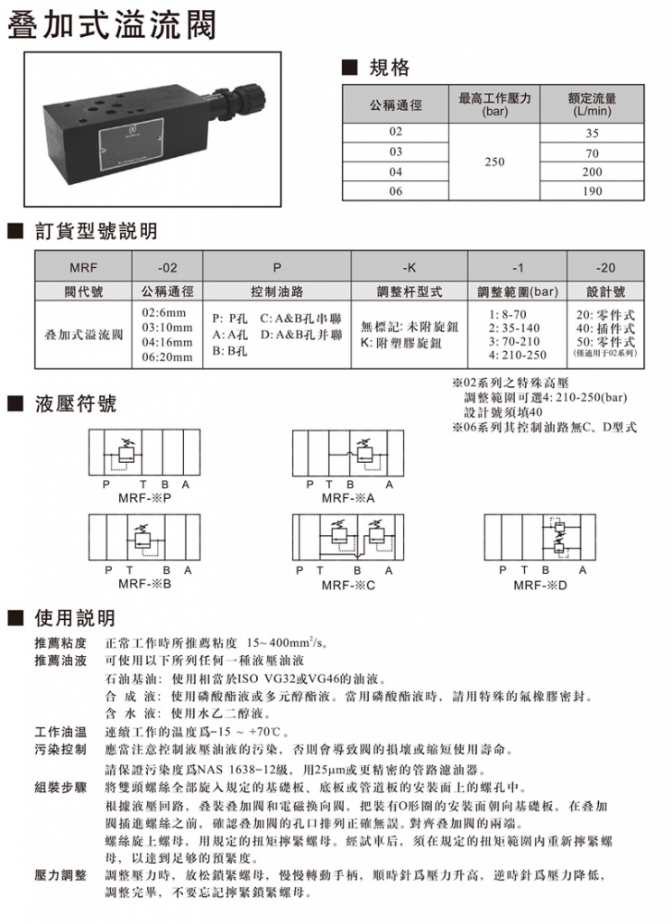 NORTHMAN北部精機(jī)疊加閥 MRF-02,03,04,06系列疊加式溢流閥