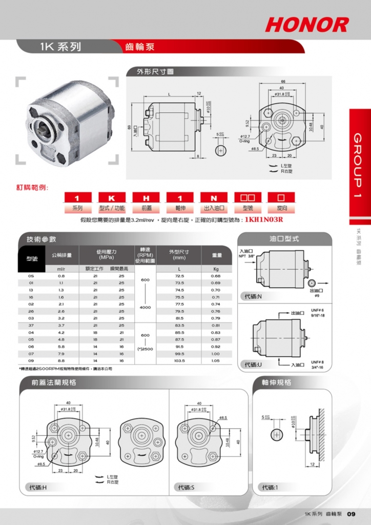HONOR鈺盟齒輪泵 1K系列高壓齒輪泵
