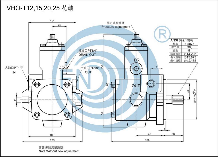 ◆本系列可變?nèi)萘咳~片幫浦,係針對油壓回路之需要油量而設計,故能提高回路效率,降低騷音,降低油溫,使所輸入之能量,變成有效的功,達到節(jié)約動力的目的。適用研磨機,CNC數(shù)控自動車床、工作母機、製鞋機械及其他各種專用機或單能機。另有7齒、9齒花鍵軸及專用配套電機。 ◆型式號碼表示法 / MODEL NUMBER DESIGNATON VHO──F──20──A2?–?? –T9?
