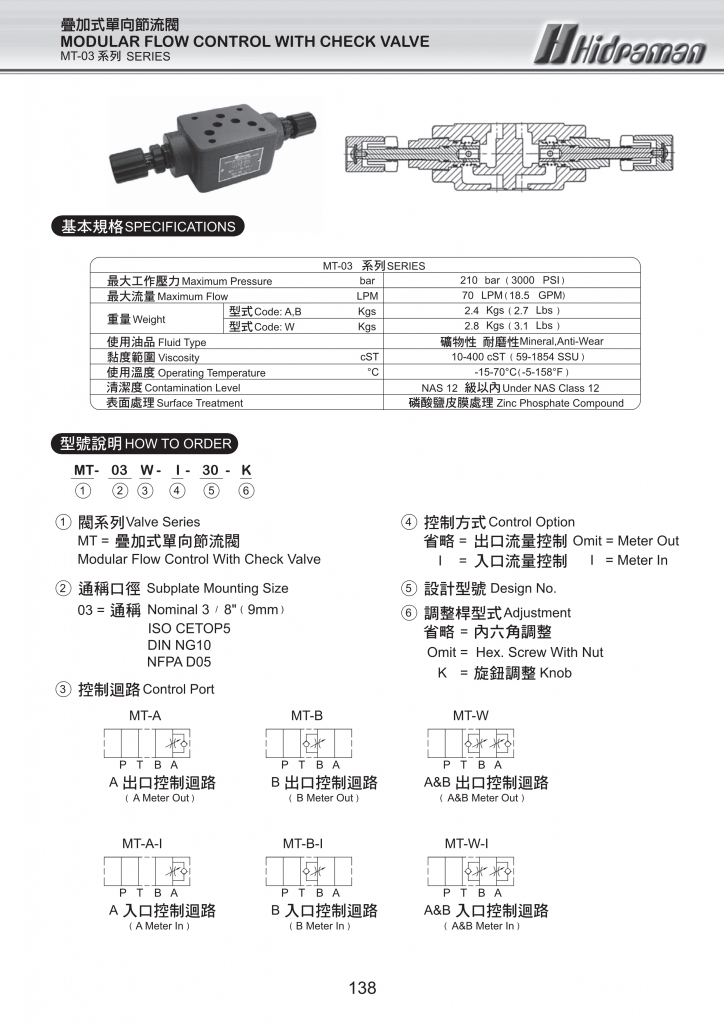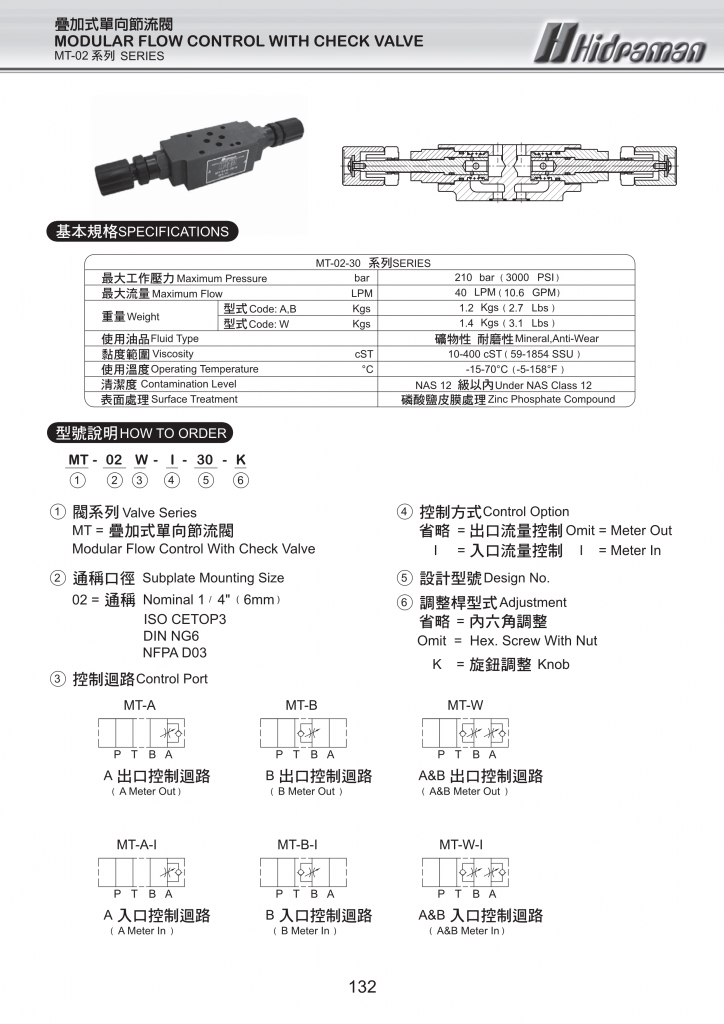 HIDRAMAN海德門疊加式控制閥 MT-02,MT-03系列疊加式單向節(jié)流閥
