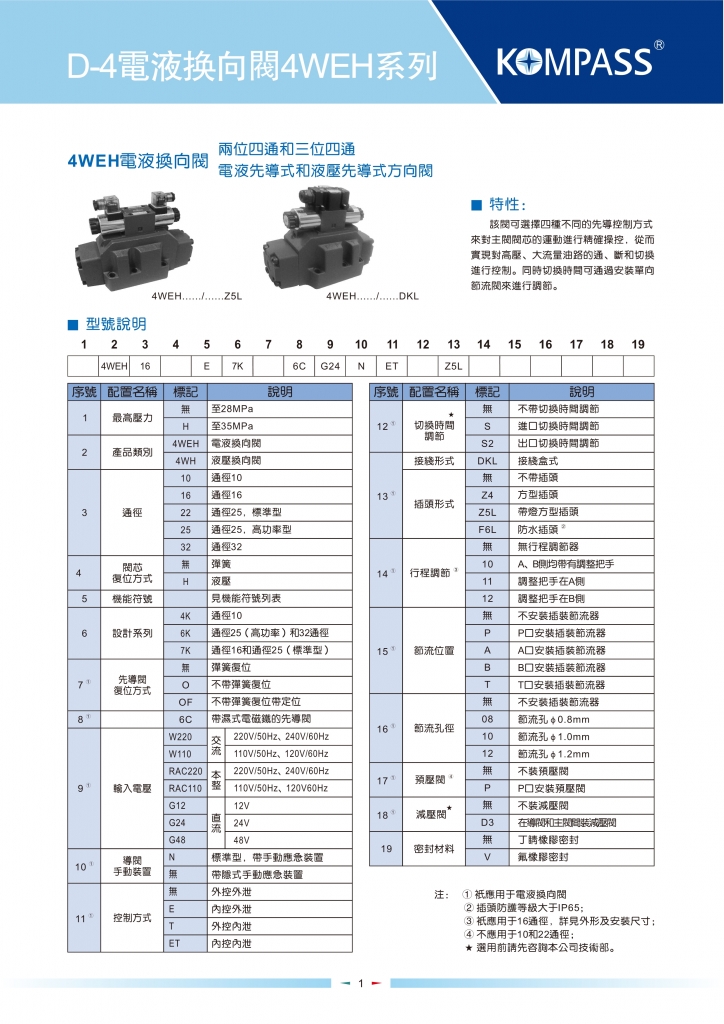 KOMPASS康百世電磁閥 4WEH系列電液換向閥