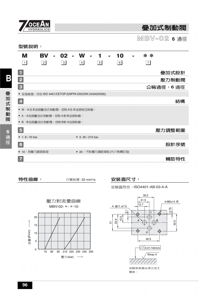 7OCEAN七洋疊加閥 MBV-02系列疊加式制動閥