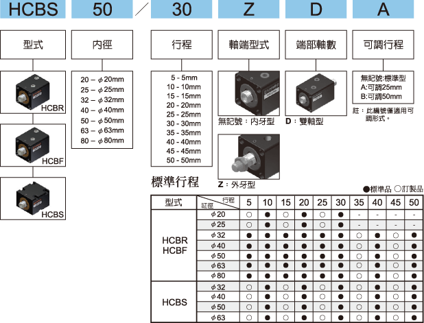 | 行程範圍 (mm) | 30 | 50 | |||||