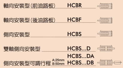 | 油缸內徑 (mm) | ??20 | ??25 | ??32 | ??40 | ??50 | ??63 | ??80 |