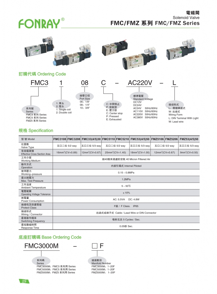 FONRAY芳銳電磁閥 FMC / FMZ 系列電磁閥