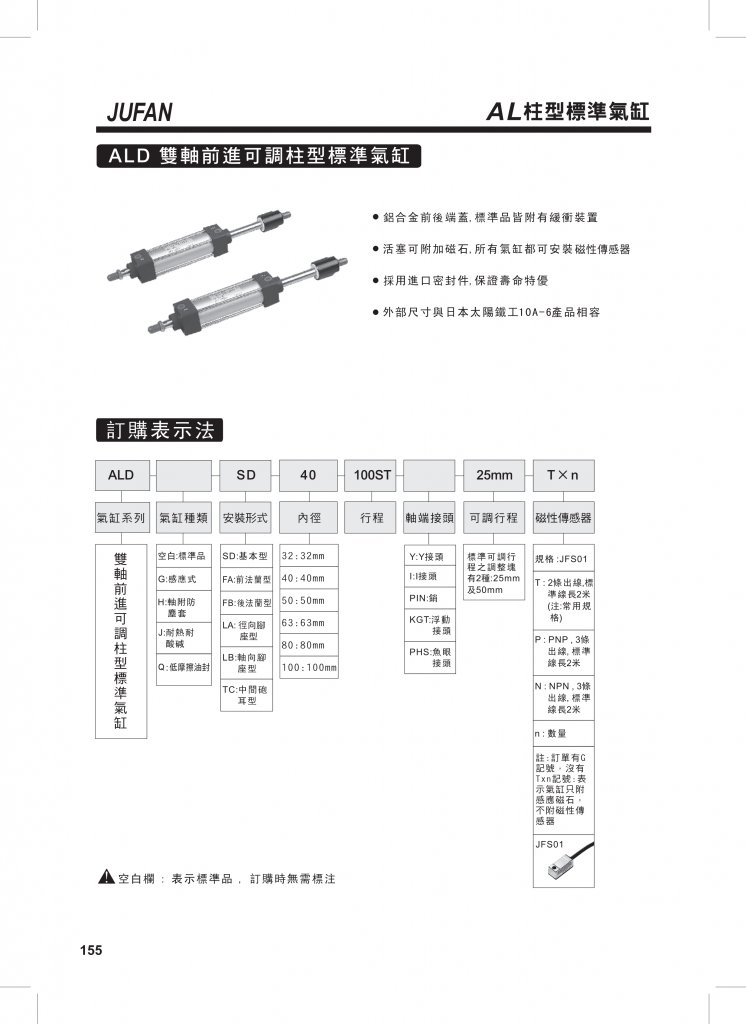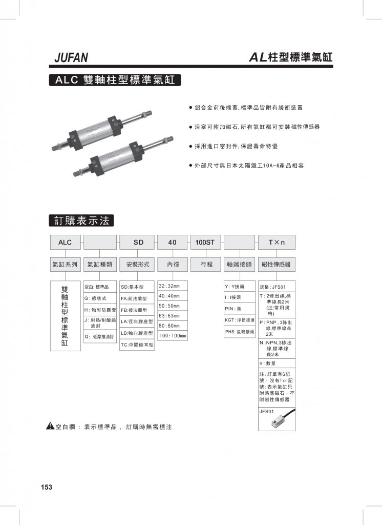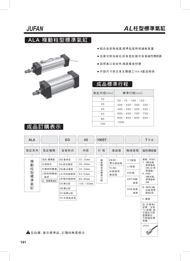 JUFAN君帆氣缸 AL系列柱形標(biāo)準(zhǔn)氣缸
