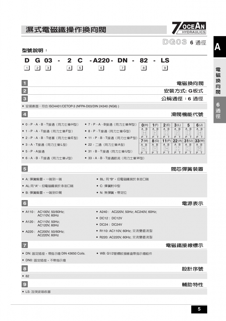 7OCEAN七洋電磁閥 DG03系列濕式電磁鐵操作換向閥
